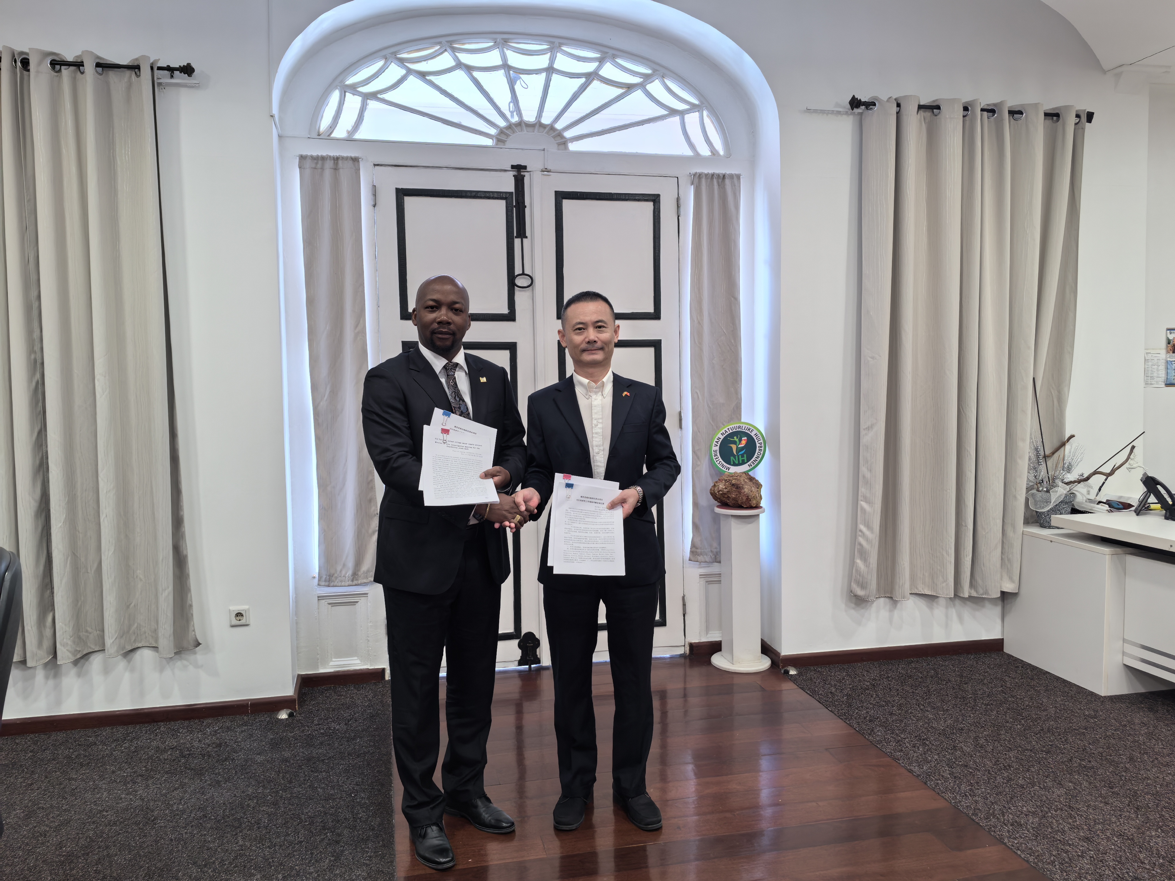 12月2日,驻苏使馆贾金易参赞与苏里南自然资源部部长阿比亚莫福签署援建苏里南村庄供水项目地勘工作座谈会会议纪要。